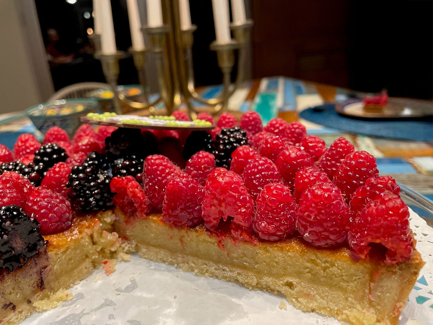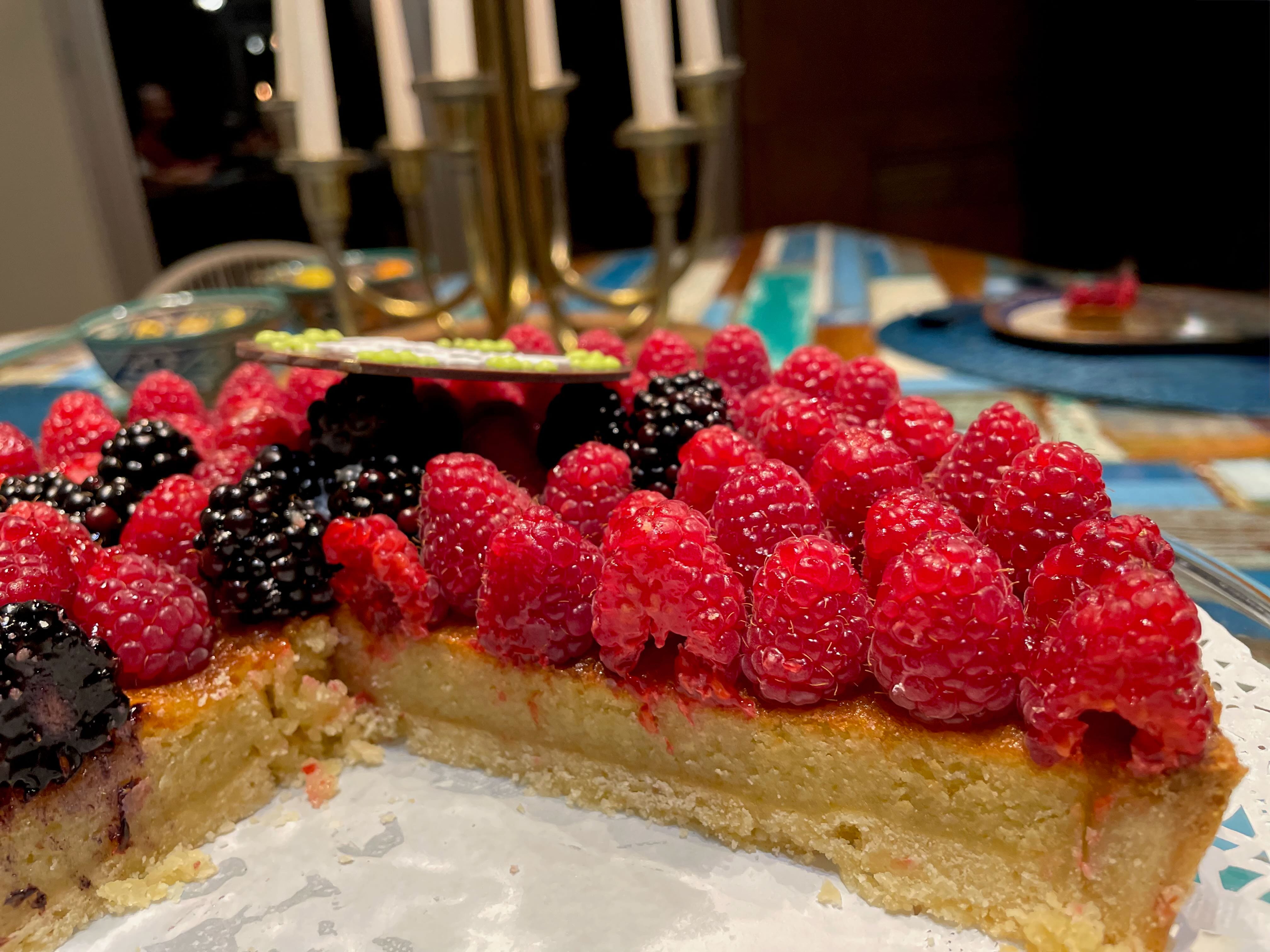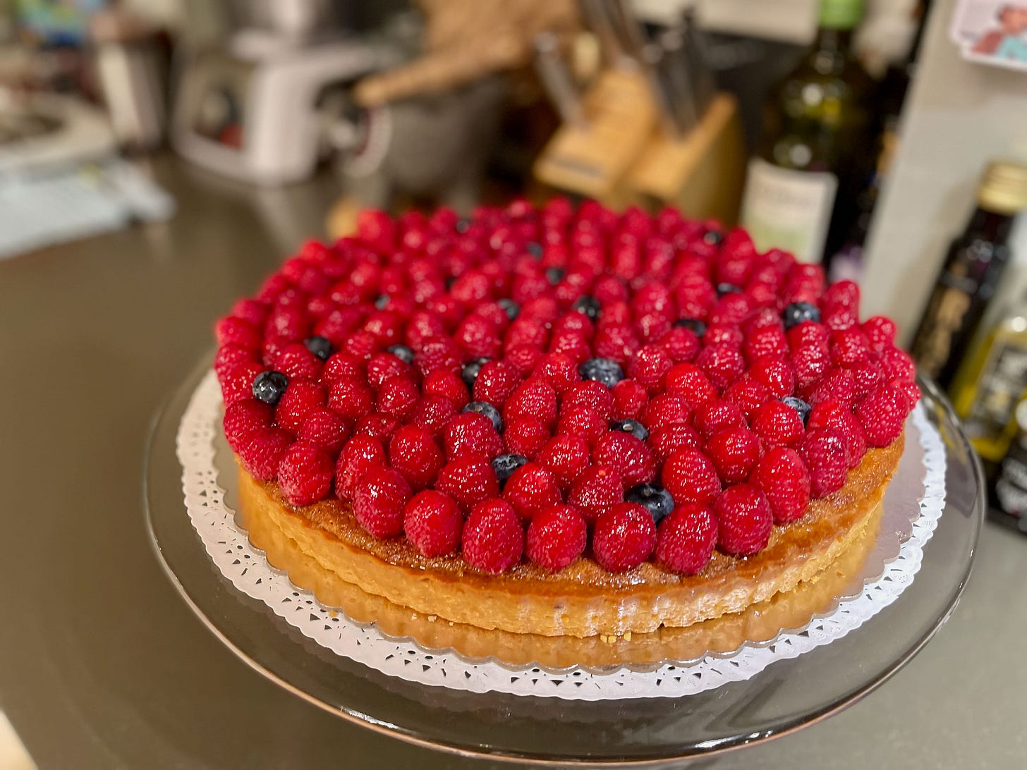 I spent days reconstructing it from memory, translating taste into technique. Pâte sablée, amandine, berries, glaze and lots of love.